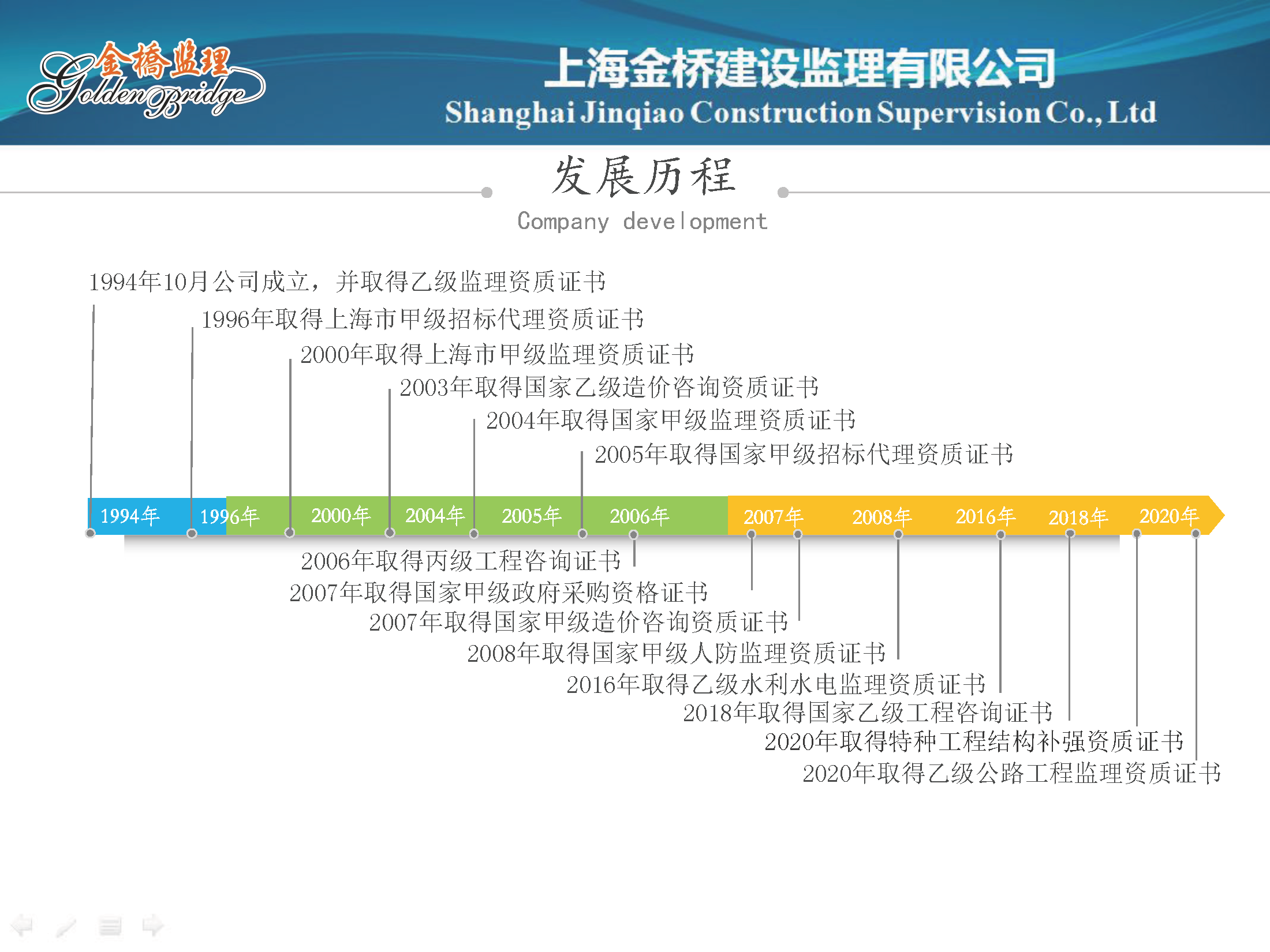 时博在线平台创建于1994年,是国家首批建设监理单位,现为上海市咨询业行业协会副会长单位、上海市建设工程咨询行业协会常务理事单位和中国监理协会会员单位。目前时博在线官网具有国家建设部批准的工程监理甲级资质、招标代理甲级资质及造价咨询甲级资质,同时还具有财政部批准的政府采购招标代理甲级资质、国家人民防空办公室批准的人防工程甲级监理资质、国家发改委批准的工程咨询资质等。时博在线官网从1999年来至今已连续十三届评为上海市信誉咨询时博在线平台,时博在线官网多次取得中国建设工程鲁班奖和国家优质工程奖、德国Iconic Awards 奖、美国LEED SILVER奖、世博会最佳展馆设计金奖,并多次荣获上海市先进工程监理时博在线平台、上海市先进招标代理时博在线平台、上海市先进民营时博在线平台和上海市浦东新区文明单位等荣誉称号,是中国2010年上海世博会第一批推荐的定点服务供应商。