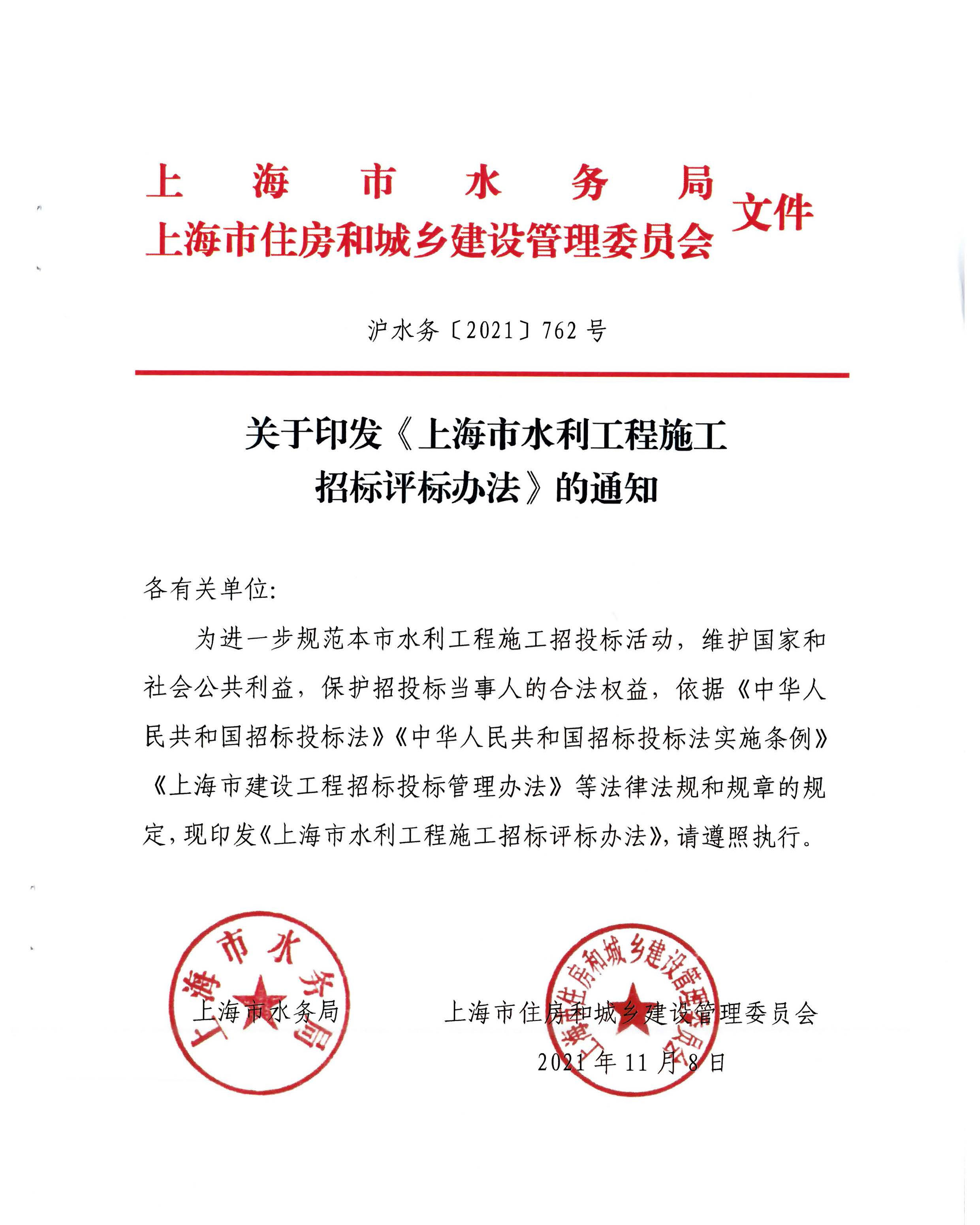 关于印发《上海市水利工程施工招标评标办法》的通知【沪水务[2021]762号】.pdf
